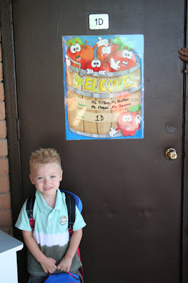 up and said today is my first day of school and was so excited to go. Chris got home and made Cooper his very delicious blue berry pancakes to help start the day off great! Of course there were pictures to be taken and slightly damp eyes along with the goodbyes. He didn't even flinch when he went into his room (without me) boo hoo... Chris picked him and cooper said "he had a good day but some other child did not cause he got yelled at already for being bad" Well as long as it was not my child.
