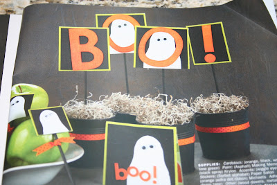 So I saw this Halloween craft in one of my Paper Crafts Magazines and wanted to make it myself. The top picture is the finished project and I love it! I personally think mine is better... anyways the bottom picture is the magazine article. Seriously mine IS better!!!