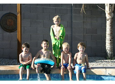 Chris and I at Cooper's Trophy party at where else but Peter Piper Pizza!!! Some of the TBall boys over for a swim party!