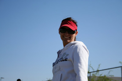 So this Saturdays game was so windy and cold, so I climed on top of my mom to keep my legs warm! Chris called me a big ole baby! WHATEVER I WAS WARM!!!